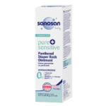 Unguentul sanosan cu pantenol pentru iritații de scutec protejează și calmează pielea sensibilă a bebelușului.